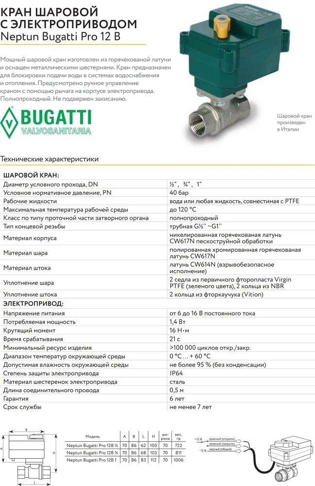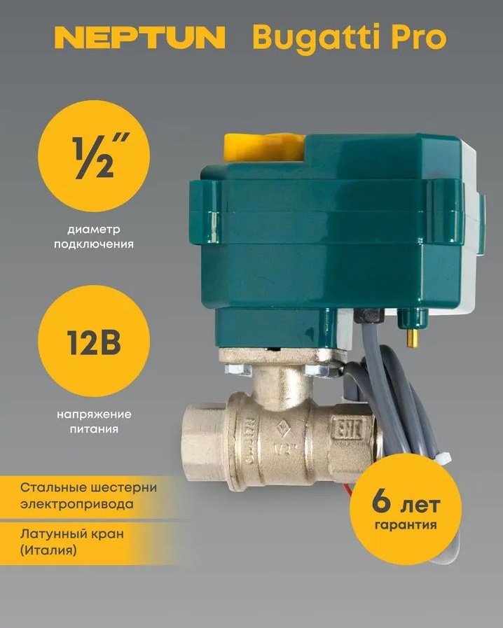 Кран шаровой с электроприводом Neptun Bugatti Pro 12В 1/2 Нептун Бугатти 100035626700.