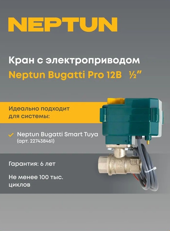 - Шаровой кран с электроприводом Neptun Bugatti Pro 12В