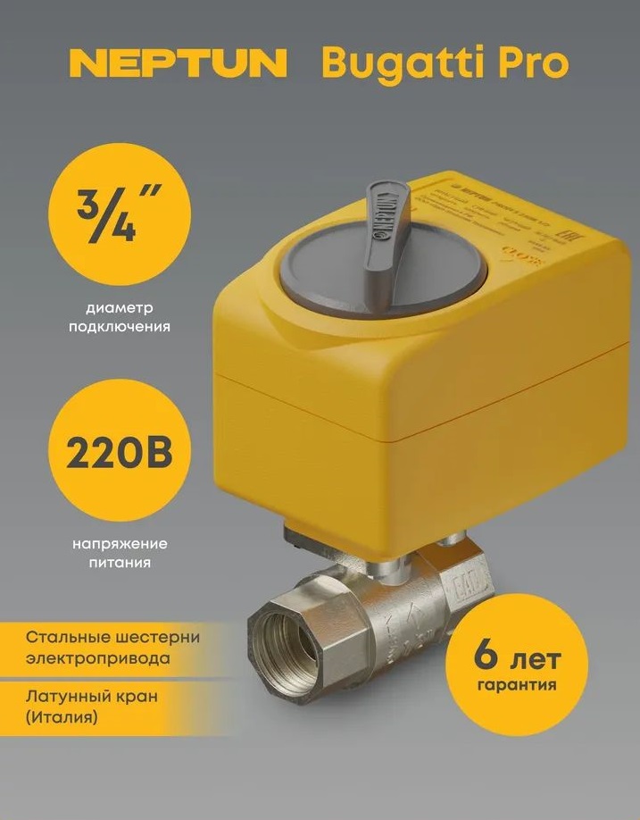 Кран шаровой с электроприводом Neptun Bugatti Pro 220В 3/4 Нептун Бугатти 100035632500.