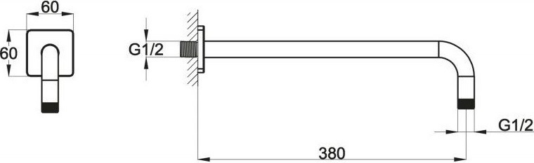 Кронштейн стеновой для верхнего душа BelBagno Carin 380 мм CAR-DAT-CRM, материал - латунь, цвет - хром.