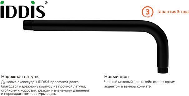 Кронштейн стеновой для верхнего душа Iddis 350 мм 001BB35i61, материал латунь, цвет чёрный.
