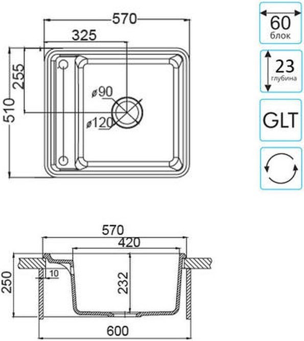 Характеристики мойка для кухни Акватон (1A724932BS280)
