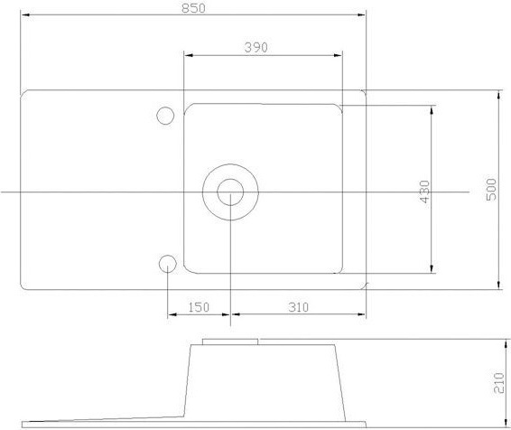Пример: Внешний размер мойки - 800х500 мм. Размер отверстия под данную мойку 780х480 мм.