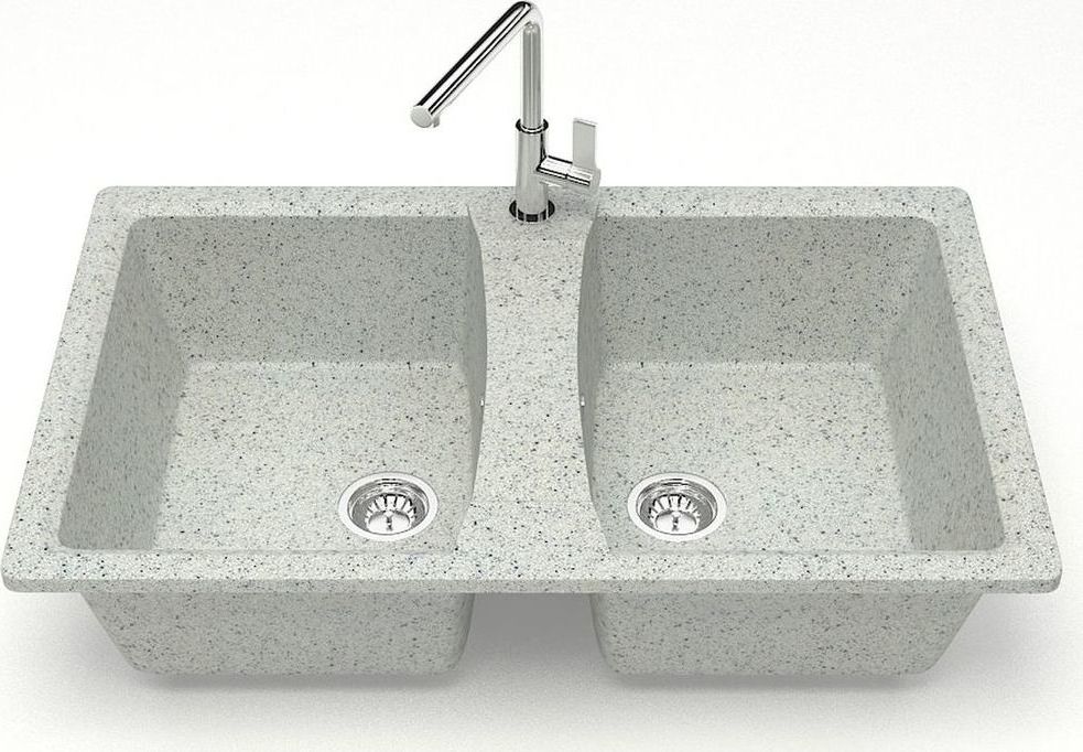 Кухонная мойка Azario Elmas с сифоном, материал искусственный камень. Цвет светло-серый. Цвета моек в ассортименте.