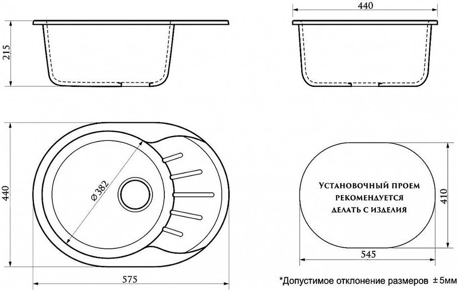 Врезная установка - способ установки, при котором в столешнице вырезается отверстие под размер мойки. Данный параметр подразумевает, что мойки будут устанавливаться поверх столешницы. Как правило размер отверстия под мойку на 2 см (20 мм) меньше внешнего размера мойки. Пример: Внешний размер мойки - 800х500 мм. Размер отверстия под данную мойку 780х480 мм.