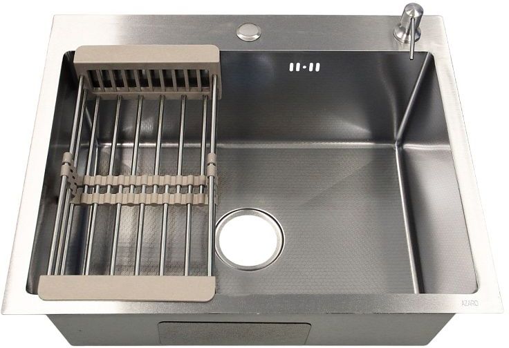Кухонная мойка Azario Nicole AZS6050H с сифоном, дозатором и коландером, материал нержавеющая сталь. Цвет серебро соты.