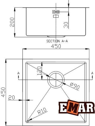 Кухонная мойка Emar EMB-112, материал нержавеющая сталь. Цвет золото. Цвета моек в ассортименте.