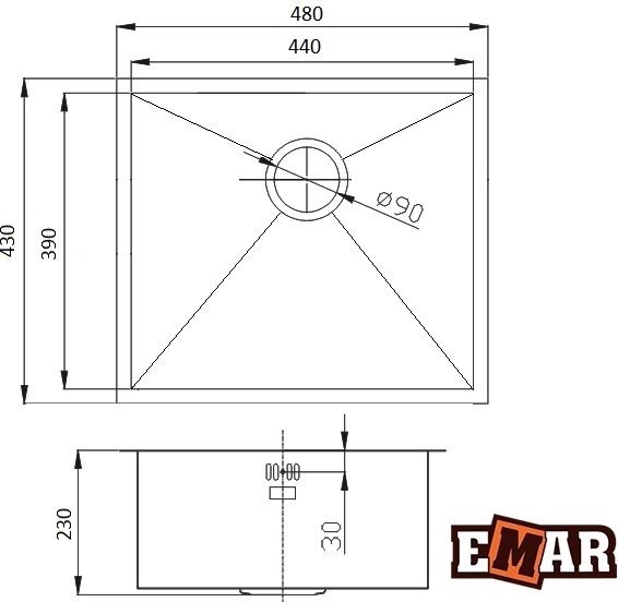 Кухонная мойка Emar EMB-114, материал нержавеющая сталь. Цвет золото. Цвета моек в ассортименте.