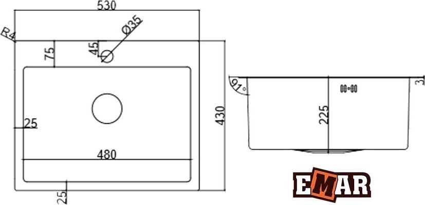 Описание мойка для кухни Emar EMB-115 PVD Nano Satine