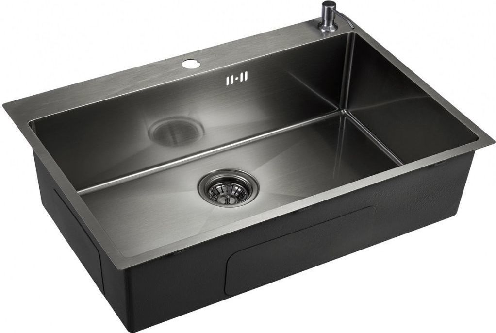 Кухонная мойка Emar EMB-125A PVD Nano Dark, 2 отверстия, дозатор в комплекте под цвет мойки, материал нержавеющая сталь. Цвет чёрный. Цвета моек в ассортименте.