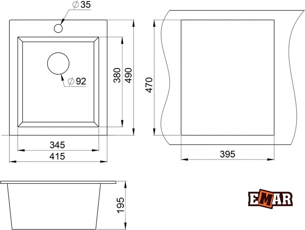 Характеристики мойка для кухни Emar (EMQ-1415.Q Барит)