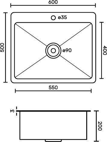 Мойка врезная, матовая, большой сифон с переливом. Сифон с углубленной горловиной, мусоросборником и крышкой. Врезная кухонная мойка произведена из премиальной нержавеющей стали AISI 304, обладает повышенной прочностью. Особенность мойки заключается в конструкции ее дна, имеющего небольшой уклон. Благодаря такой особенности, вода быстрее уходит в слив, не застаивается, что способствует поддержанию гигиеничности в чаше. Скругленные внутренние углы облегчают уход за мойкой, препятствуют скоплению частичек грязи. Тихой в использовании мойку делает шумоизолирующее покрытие и накладки с обратной стороны мойки. В комплект входит универсальная раздвижная корзина, коврик, сифон, мойка, крепёж. Габаритные размеры: ширина 600 мм, длина 500 мм, глубина 220 мм, толщина основания 3,0 мм, чаша 0,8 мм. Вес - 9,000 кг, объём - 0,08845 м3.