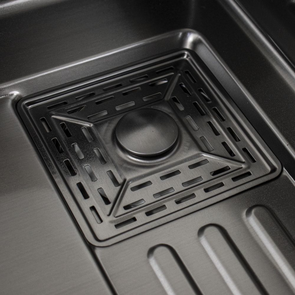 Мойка врезная, цвета графит, большой сифон с переливом. Сифон с углубленной горловиной, мусоросборником и крышкой. Врезная кухонная мойка произведена из премиальной нержавеющей стали AISI 304, обладает повышенной прочностью. Особенность мойки заключается в конструкции ее дна, имеющего небольшой уклон. Благодаря такой особенности, вода быстрее уходит в слив, не застаивается, что способствует поддержанию гигиеничности в чаше. Скругленные внутренние углы облегчают уход за мойкой, препятствуют скоплению частичек грязи. Тихой в использовании мойку делает шумоизолирующее покрытие и накладки с обратной стороны мойки. В комплект входит корзина, сифон, мойка, крепёж. Габаритные размеры: ширина 650 мм, длина 500 мм, глубина 200 мм, толщина основания 3,0 мм, чаша 0,8 мм. Вес - 8.65 кг, объём - 0.093 м3.