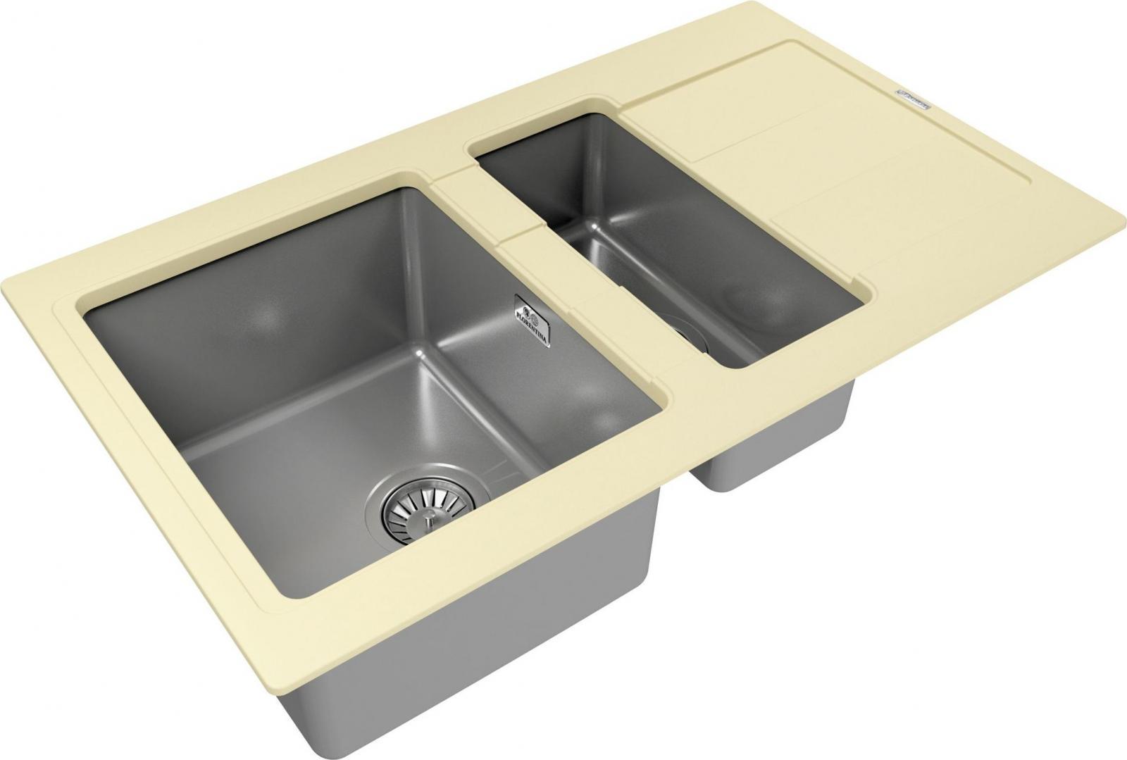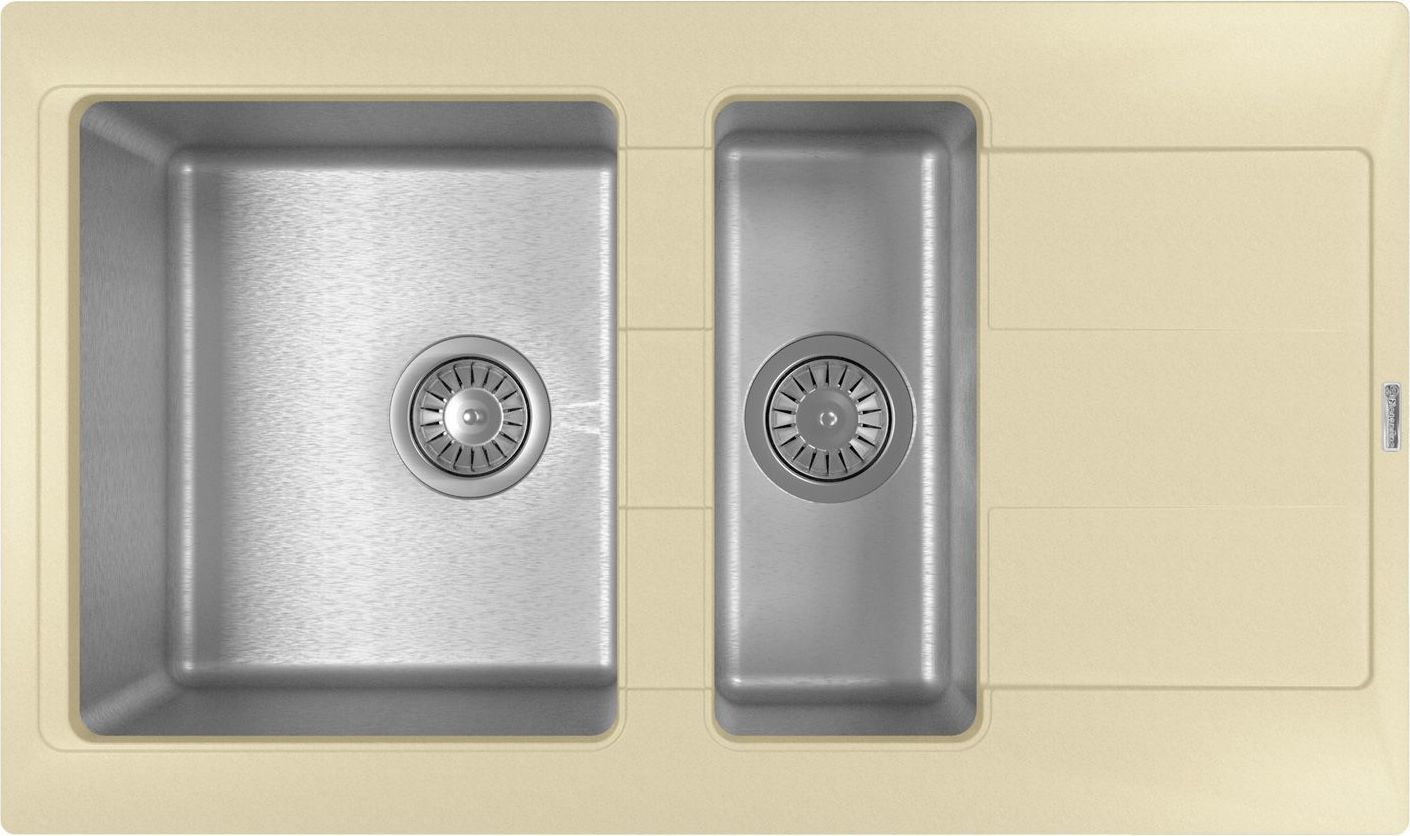 Кухонная мойка Florentina Комби 860K, материал чаши нержавеющая сталь, материал столешницы кварцевый композит (искусственный камень). Цвет шампань. Цвета моек в ассортименте.