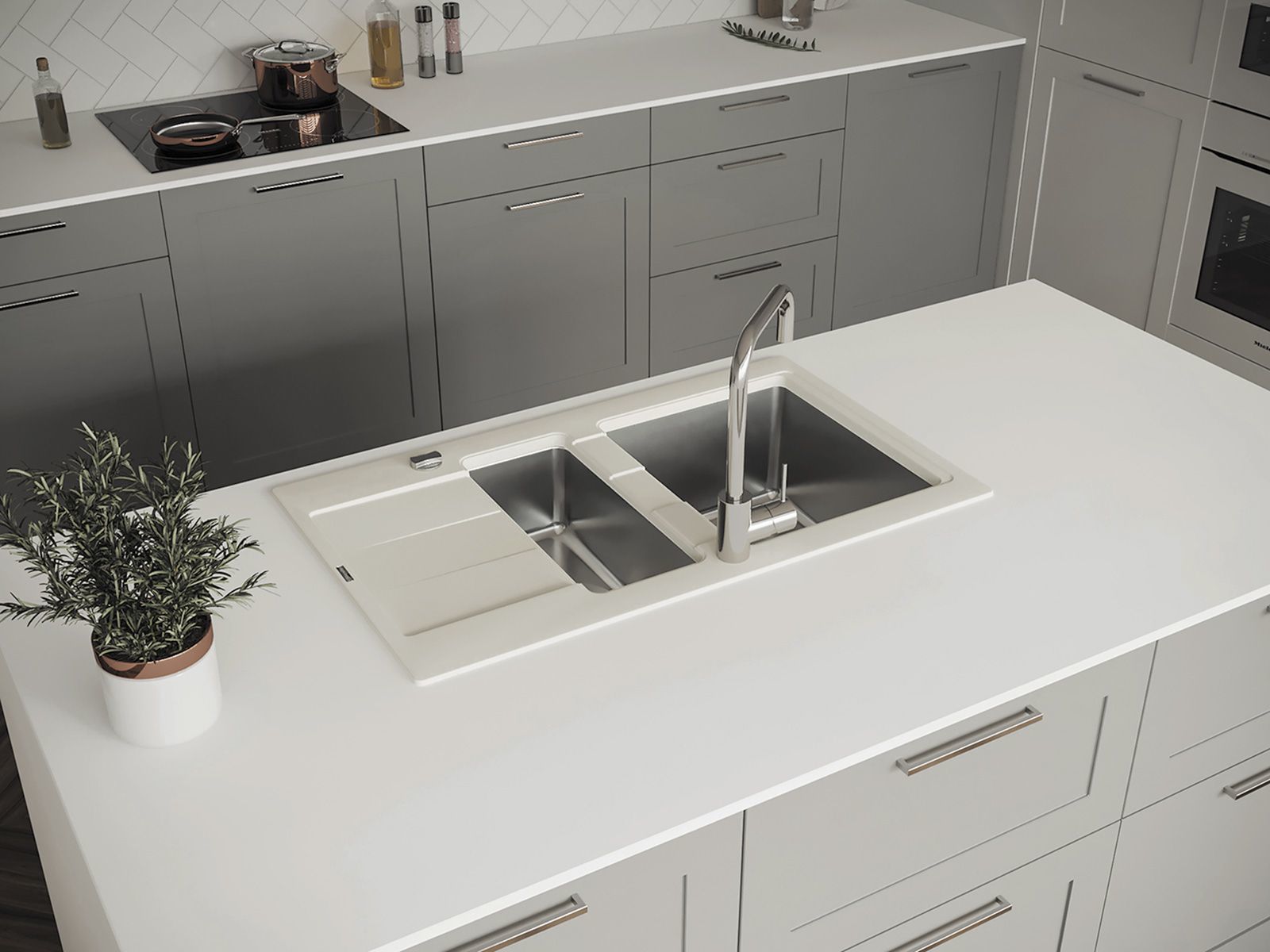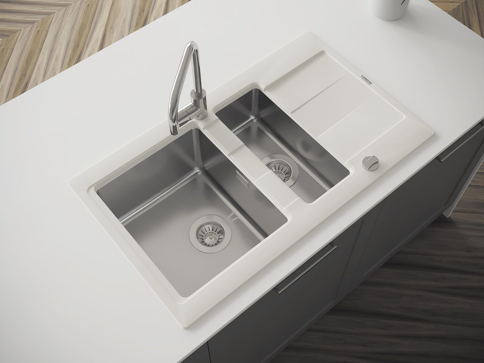 Кухонная мойка Florentina Комби 860K, материал чаши нержавеющая сталь, материал столешницы кварцевый композит (искусственный камень). Цвет жасмин. Цвета моек в ассортименте.