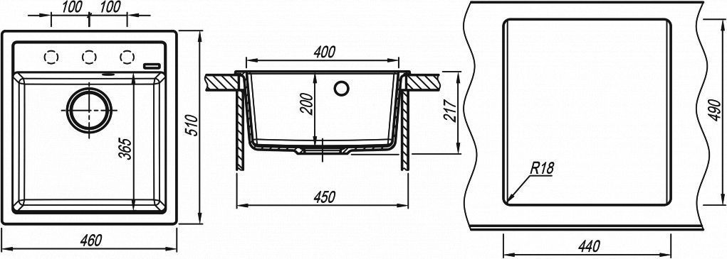 Врезная установка - способ установки, при котором в столешнице вырезается отверстие под размер мойки. Данный параметр подразумевает, что мойки будут устанавливаться поверх столешницы. Как правило размер отверстия под мойку на 2 см (20 мм) меньше внешнего размера мойки. Пример: Внешний размер мойки - 800х500 мм. Размер отверстия под данную мойку 780х480 мм.