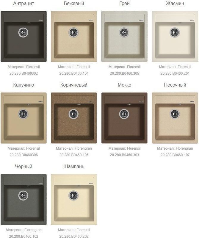 Кухонная мойка Florentina Липси 460 20.280.B0460302, материал искусственный камень. Цвет антрацит. Цвета моек в ассортименте.