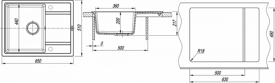 Врезная установка - способ установки, при котором в столешнице вырезается отверстие под размер мойки. Данный параметр подразумевает, что мойки будут устанавливаться поверх столешницы. Как правило размер отверстия под мойку на 2 см (20 мм) меньше внешнего размера мойки. Пример: Внешний размер мойки - 800х500 мм. Размер отверстия под данную мойку 780х480 мм.
