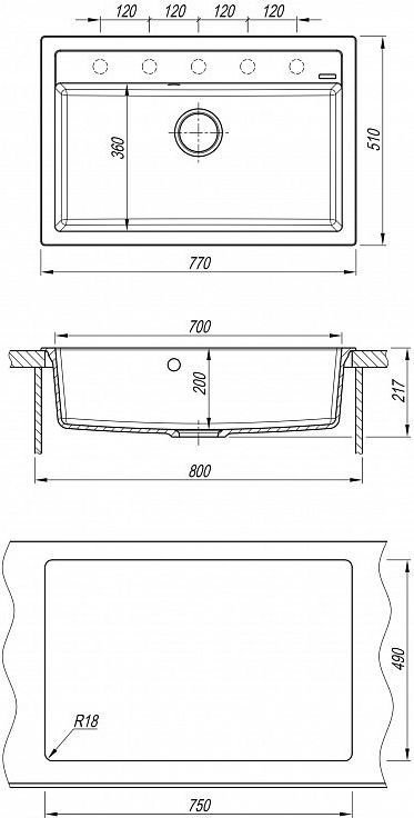 Кухонная мойка Florentina Липси 770 20.440.E0770.302, материал искусственный камень. Цвет антрацит. Цвета моек в ассортименте.