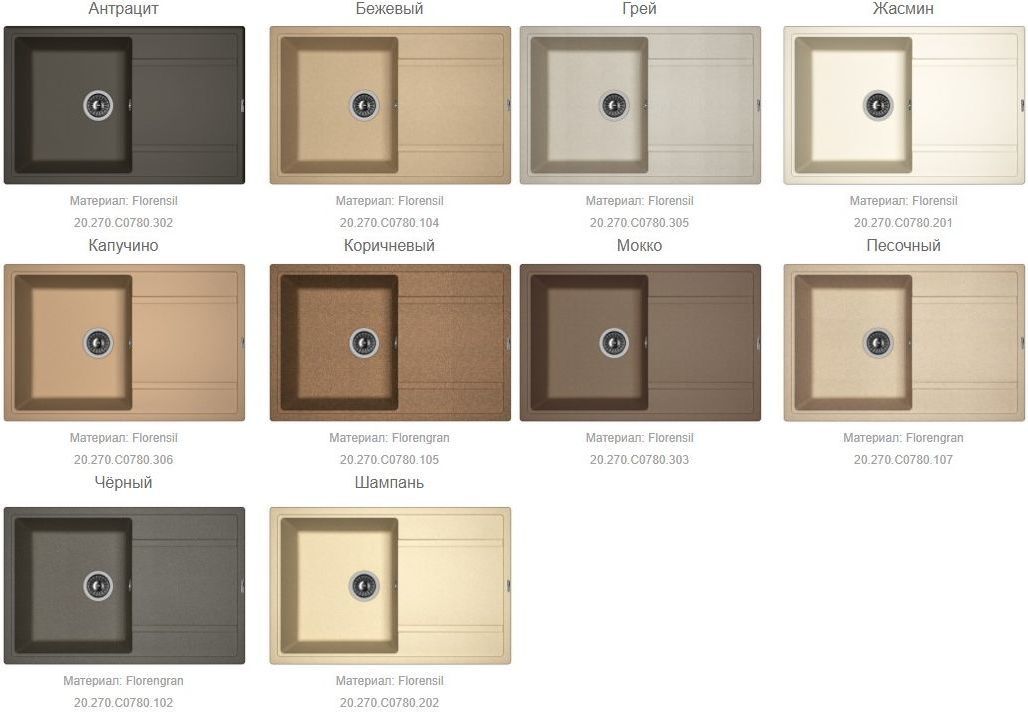 Кухонная мойка Florentina Липси 780 20.270.C0780.201, материал искусственный камень. Цвет жасмин. Цвета моек в ассортименте.
