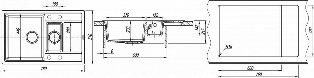 Врезная установка - способ установки, при котором в столешнице вырезается отверстие под размер мойки. Данный параметр подразумевает, что мойки будут устанавливаться поверх столешницы. Как правило размер отверстия под мойку на 2 см (20 мм) меньше внешнего размера мойки. Пример: Внешний размер мойки - 800х500 мм. Размер отверстия под данную мойку 780х480 мм.