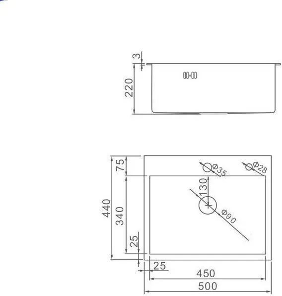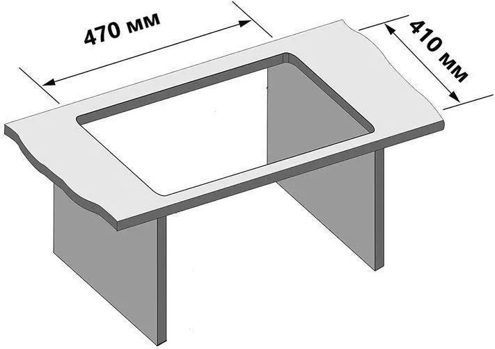 Пример: Внешний размер мойки - 800х500 мм. Размер отверстия под данную мойку 780х480 мм.