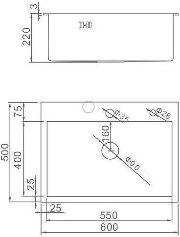 Пример: Внешний размер мойки - 800х500 мм. Размер отверстия под данную мойку 780х480 мм.