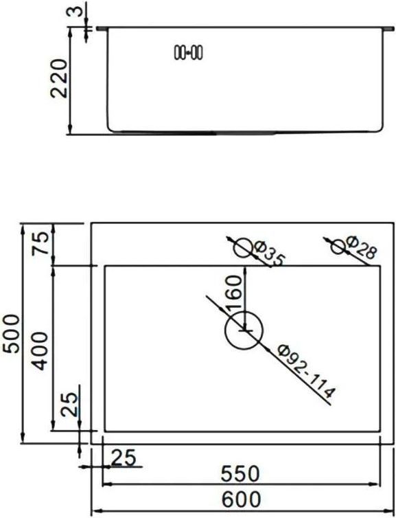 Пример: Внешний размер мойки - 800х500 мм. Размер отверстия под данную мойку 780х480 мм.