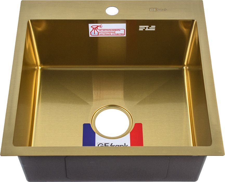 Кухонная мойка GFfrank 50502Z с сифоном, материал нержавеющая сталь. Цвет золото.