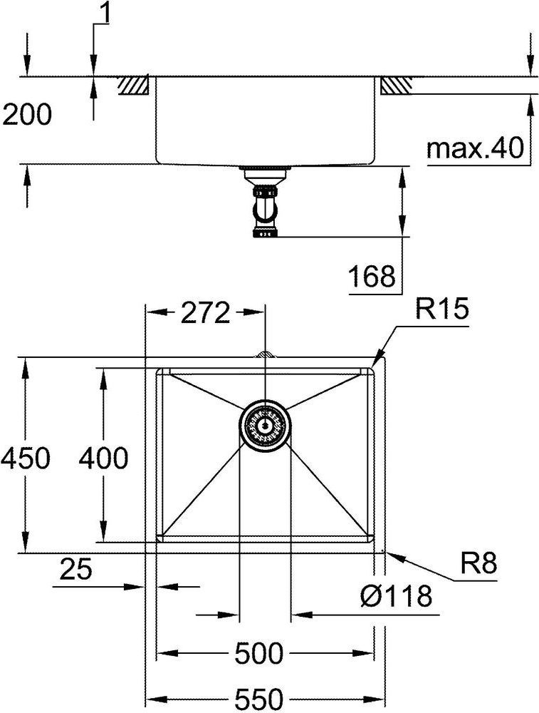 Кухонная мойка Grohe K700U 60-S 54.4/44.4 1.0 Undermount 31574SD1 1 мм, нержавеющая сталь