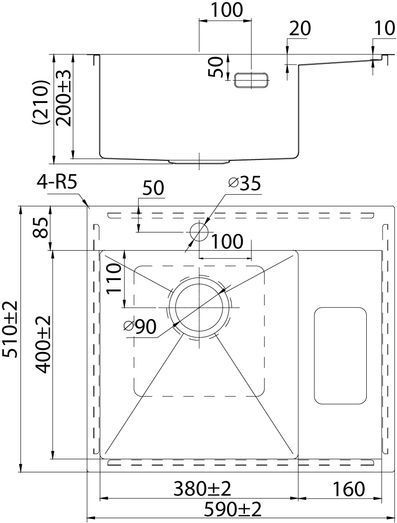 Врезная установка - способ установки, при котором в столешнице вырезается отверстие под размер мойки. Данный параметр подразумевает, что мойки будут устанавливаться поверх столешницы. Как правило размер отверстия под мойку на 2 см (20 мм) меньше внешнего размера мойки. Пример: Внешний размер мойки - 800х500 мм. Размер отверстия под данную мойку 780х480 мм.