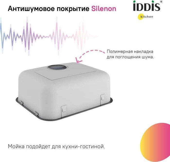 - Специальное антишумовое покрытие и полимерные накладки на оборотной стороне чаши снижают шум при использовании мойки.