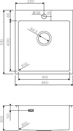 Пример: Внешний размер мойки - 800х500 мм. Размер отверстия под данную мойку 780х480 мм.