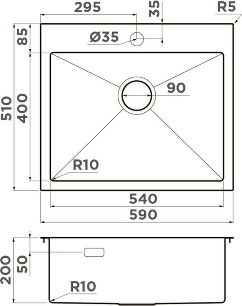 Врезная установка - способ установки, при котором в столешнице вырезается отверстие под размер мойки. Данный параметр подразумевает, что мойки будут устанавливаться поверх столешницы. Как правило размер отверстия под мойку на 2 см (20 мм) меньше внешнего размера мойки. Пример: Внешний размер мойки - 800х500 мм. Размер отверстия под данную мойку 780х480 мм.