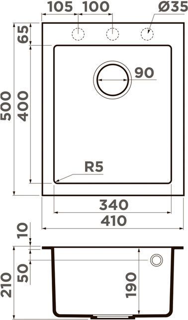 Врезная установка - способ установки, при котором в столешнице вырезается отверстие под размер мойки. Данный параметр подразумевает, что мойки будут устанавливаться поверх столешницы. Как правило размер отверстия под мойку на 2 см (20 мм) меньше внешнего размера мойки. Пример: Внешний размер мойки - 800х500 мм. Размер отверстия под данную мойку 780х480 мм.