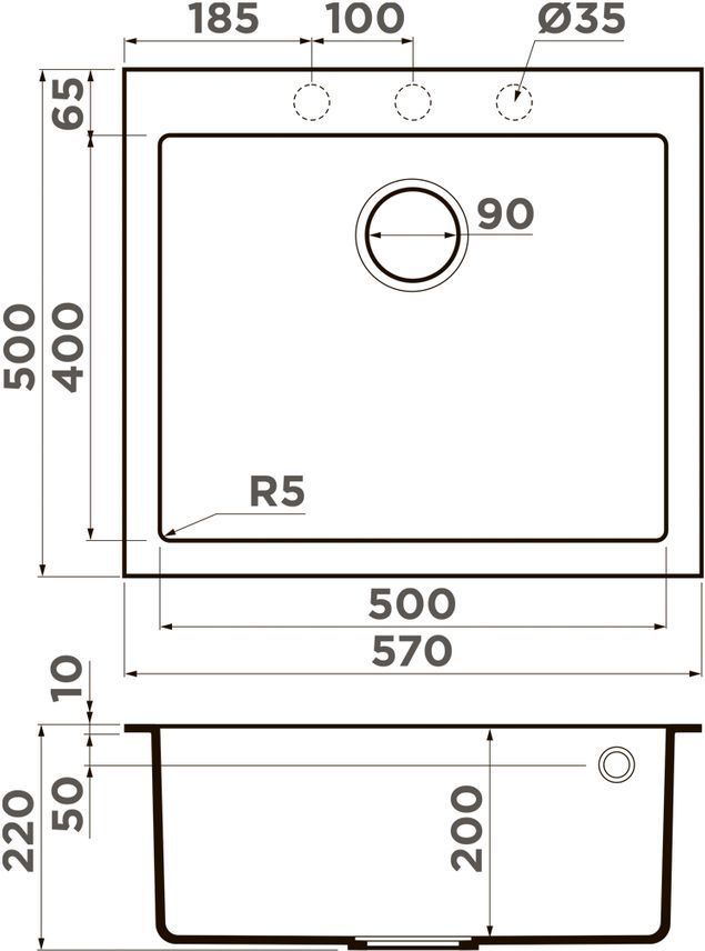 Врезная установка - способ установки, при котором в столешнице вырезается отверстие под размер мойки. Данный параметр подразумевает, что мойки будут устанавливаться поверх столешницы. Как правило размер отверстия под мойку на 2 см (20 мм) меньше внешнего размера мойки. Пример: Внешний размер мойки - 800х500 мм. Размер отверстия под данную мойку 780х480 мм.