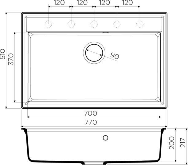 Врезная установка - способ установки, при котором в столешнице вырезается отверстие под размер мойки. Данный параметр подразумевает, что мойки будут устанавливаться поверх столешницы. Как правило размер отверстия под мойку на 2 см (20 мм) меньше внешнего размера мойки. Пример: Внешний размер мойки - 800х500 мм. Размер отверстия под данную мойку 780х480 мм.
