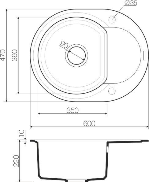 Врезная установка - способ установки, при котором в столешнице вырезается отверстие под размер мойки. Данный параметр подразумевает, что мойки будут устанавливаться поверх столешницы. Как правило размер отверстия под мойку на 2 см (20 мм) меньше внешнего размера мойки. Пример: Внешний размер мойки - 800х500 мм. Размер отверстия под данную мойку 780х480 мм.