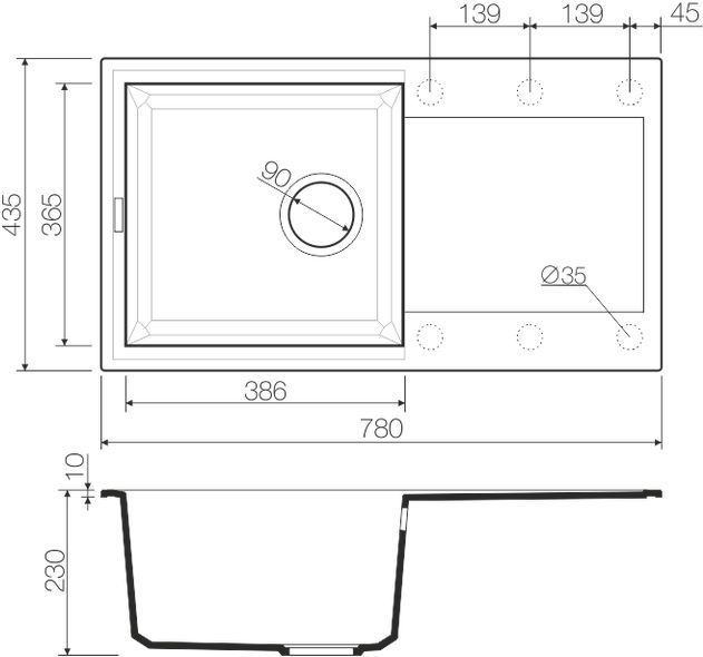 Врезная установка - способ установки, при котором в столешнице вырезается отверстие под размер мойки. Данный параметр подразумевает, что мойки будут устанавливаться поверх столешницы. Как правило размер отверстия под мойку на 2 см (20 мм) меньше внешнего размера мойки. Пример: Внешний размер мойки - 800х500 мм. Размер отверстия под данную мойку 780х480 мм.