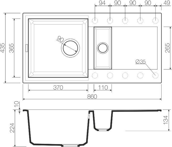 Врезная установка - способ установки, при котором в столешнице вырезается отверстие под размер мойки. Данный параметр подразумевает, что мойки будут устанавливаться поверх столешницы. Как правило размер отверстия под мойку на 2 см (20 мм) меньше внешнего размера мойки. Пример: Внешний размер мойки - 800х500 мм. Размер отверстия под данную мойку 780х480 мм.