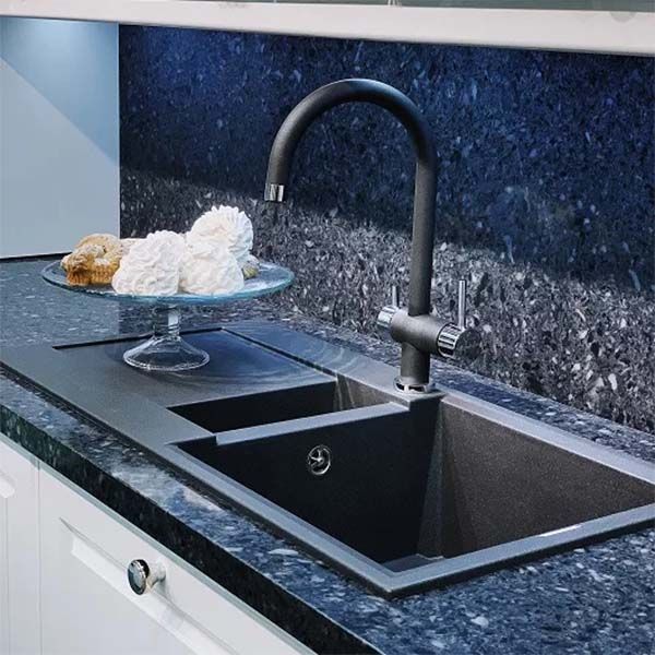 • В составе материала «Tetogranit Metal» : акриловая смола и натуральный гранит с добавлением металлических частиц, которые придают блеск и мерцание поверхности мойки. «Tetogranit Metal» отличается максимальной устойчивостью к температурным перепадам, ударам, царапинам и пятнам.