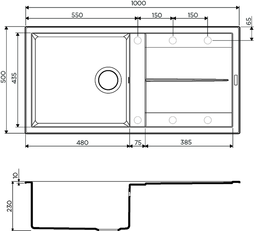 Врезная установка - способ установки, при котором в столешнице вырезается отверстие под размер мойки. Данный параметр подразумевает, что мойки будут устанавливаться поверх столешницы. Как правило размер отверстия под мойку на 2 см (20 мм) меньше внешнего размера мойки. Пример: Внешний размер мойки - 800х500 мм. Размер отверстия под данную мойку 780х480 мм.