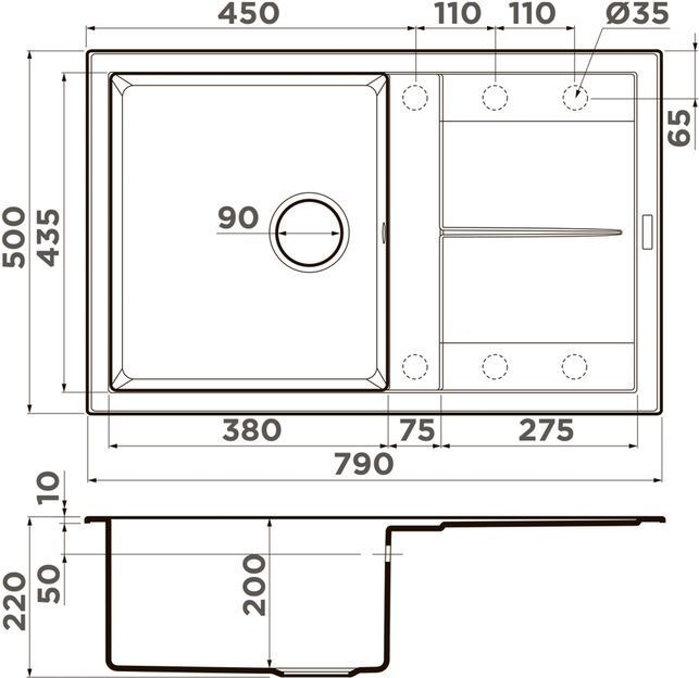 Врезная установка - способ установки, при котором в столешнице вырезается отверстие под размер мойки. Данный параметр подразумевает, что мойки будут устанавливаться поверх столешницы. Как правило размер отверстия под мойку на 2 см (20 мм) меньше внешнего размера мойки. Пример: Внешний размер мойки - 800х500 мм. Размер отверстия под данную мойку 780х480 мм.