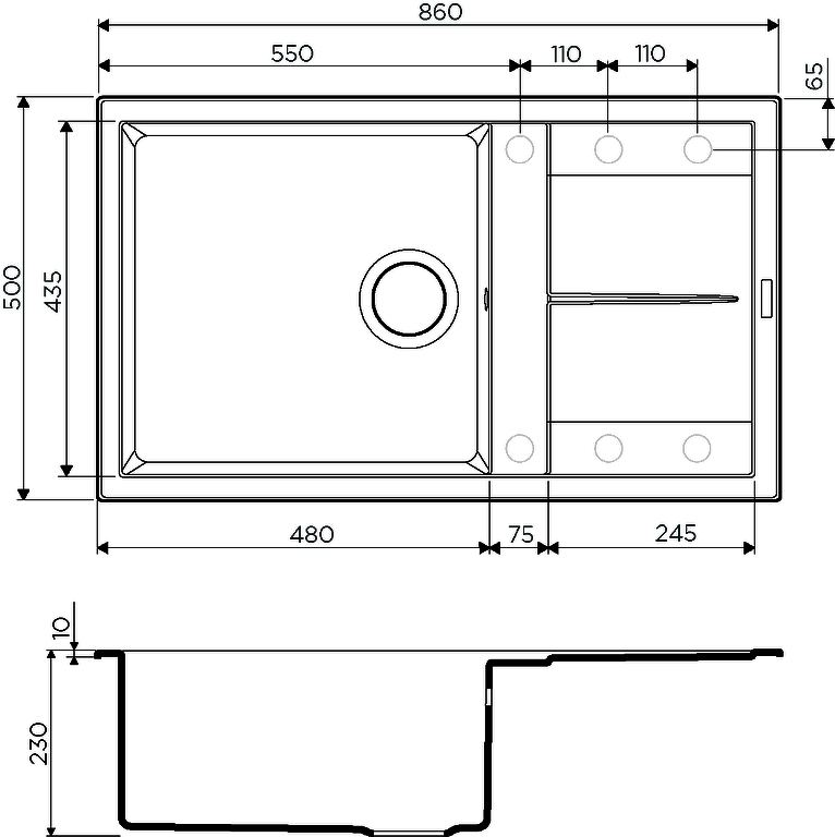 Врезная установка - способ установки, при котором в столешнице вырезается отверстие под размер мойки. Данный параметр подразумевает, что мойки будут устанавливаться поверх столешницы. Как правило размер отверстия под мойку на 2 см (20 мм) меньше внешнего размера мойки. Пример: Внешний размер мойки - 800х500 мм. Размер отверстия под данную мойку 780х480 мм.