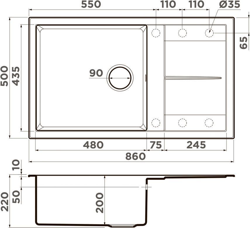 Врезная установка - способ установки, при котором в столешнице вырезается отверстие под размер мойки. Данный параметр подразумевает, что мойки будут устанавливаться поверх столешницы. Как правило размер отверстия под мойку на 2 см (20 мм) меньше внешнего размера мойки. Пример: Внешний размер мойки - 800х500 мм. Размер отверстия под данную мойку 780х480 мм.
