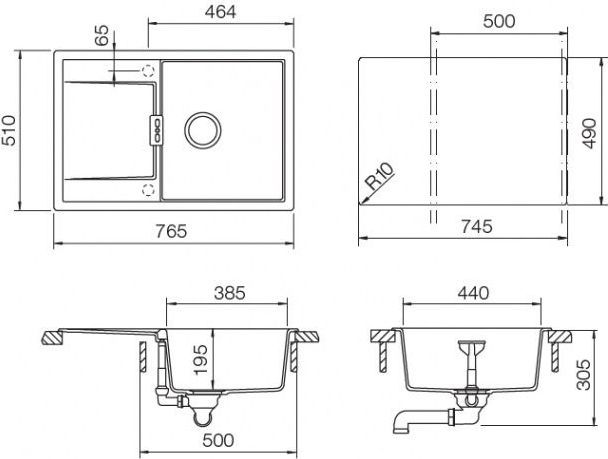 Врезная установка - способ установки, при котором в столешнице вырезается отверстие под размер мойки. Данный параметр подразумевает, что мойки будут устанавливаться поверх столешницы. Как правило размер отверстия под мойку на 2 см (20 мм) меньше внешнего размера мойки. Пример: Внешний размер мойки - 800х500 мм. Размер отверстия под данную мойку 780х480 мм.