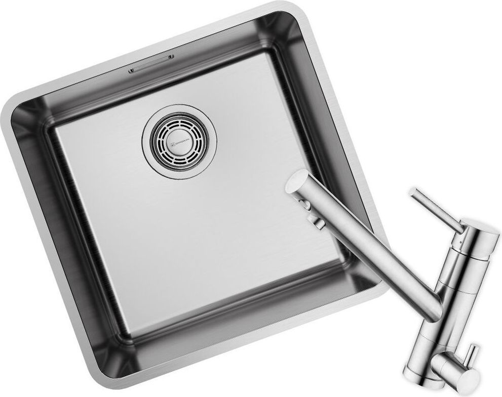 Кухонная мойка + смеситель с подключением фильтра Omoikiri OMI 43-U/I-IN ULTRA + TONAMI-BN 7411.4018, материал нержавеющая сталь. Цвет нержавеющая сталь.