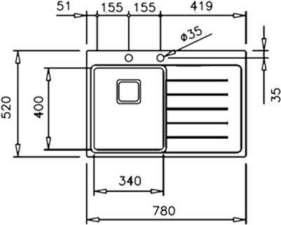 Врезная установка - способ установки, при котором в столешнице вырезается отверстие под размер мойки. Данный параметр подразумевает, что мойки будут устанавливаться поверх столешницы. Как правило размер отверстия под мойку на 2 см (20 мм) меньше внешнего размера мойки. Пример: Внешний размер мойки - 800х500 мм. Размер отверстия под данную мойку 780х480 мм.