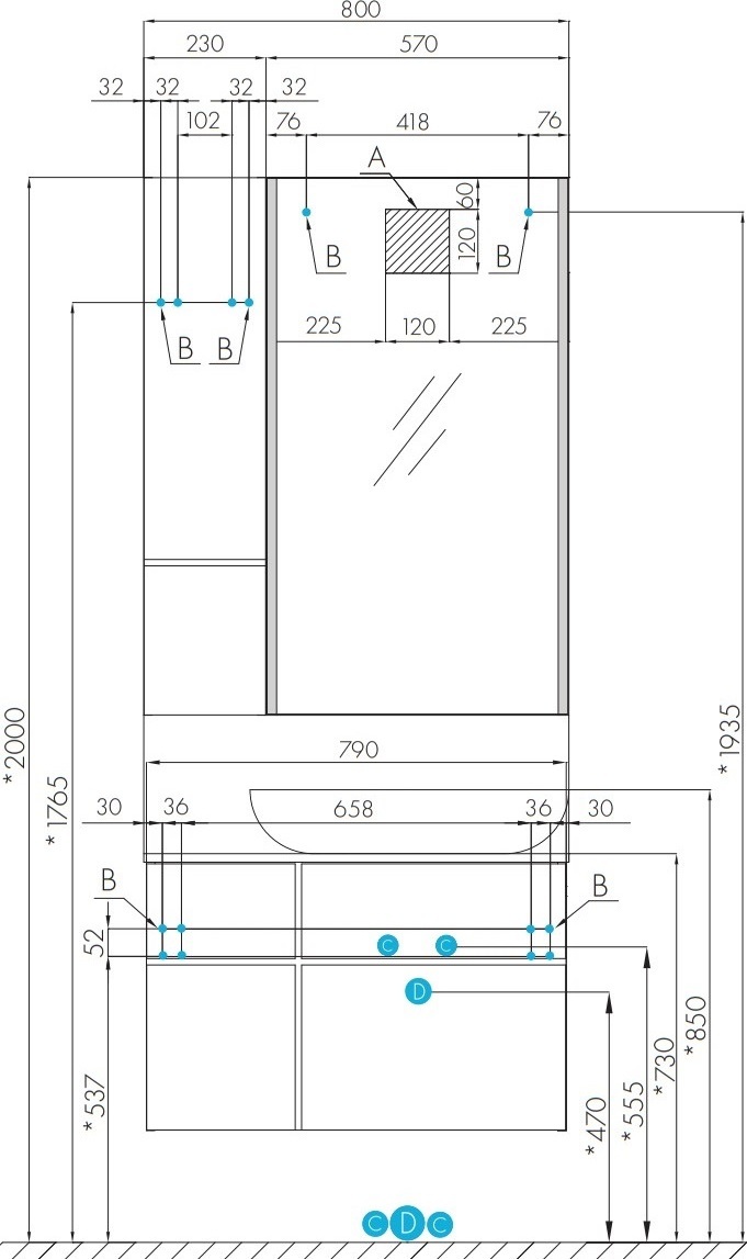 - Внутреннее пространство шкафчика поделено на асимметричные секции, что позволяет разместить различные косметические средства