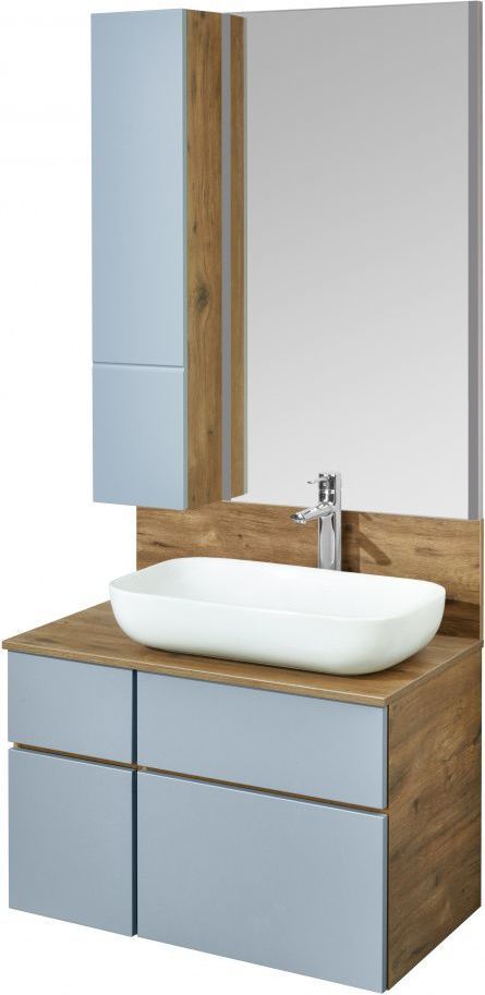 - Модуль выполнен в дизайне тумбы: матовая пленка на фасаде в сочетании с натуральным декором корпуса дуб рустикальный